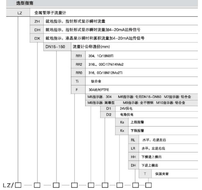 型號: LZ-DH-15,LZ-DH-25,LZ-DH-40,LZ-DH-50,LZ-DH-80,LZ-DH-100,LZ-DH-150,金屬管浮子流量計M9指示器