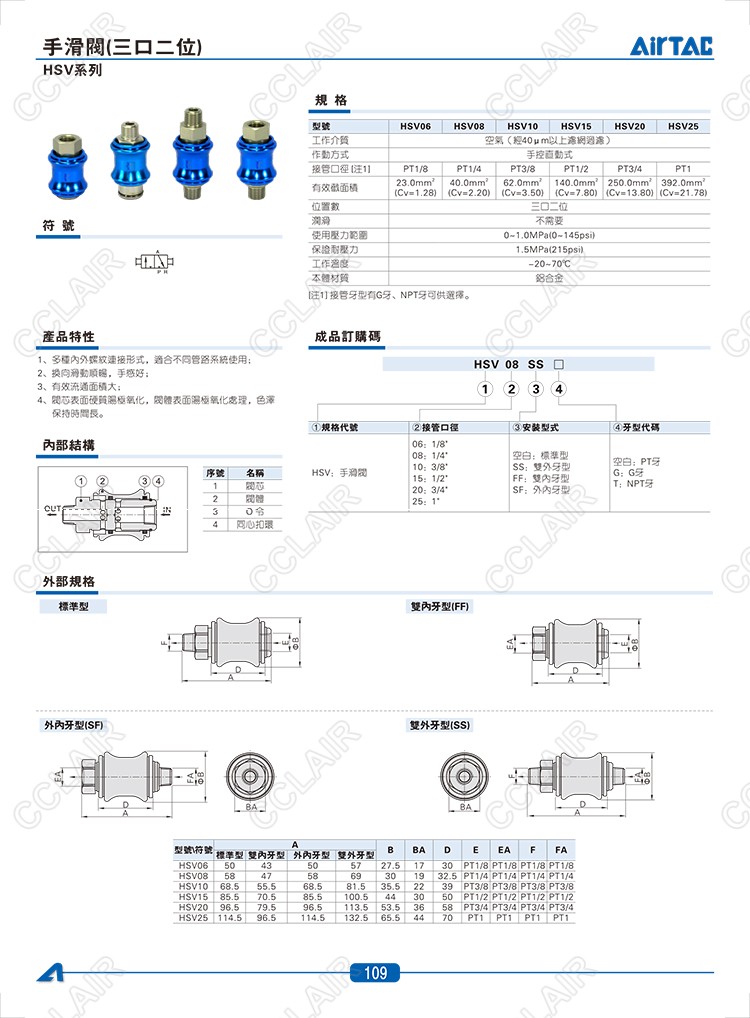 HSV06,HSV08,HSV10,HSV15,HSV20,HSV25,AIRTAC手滑閥