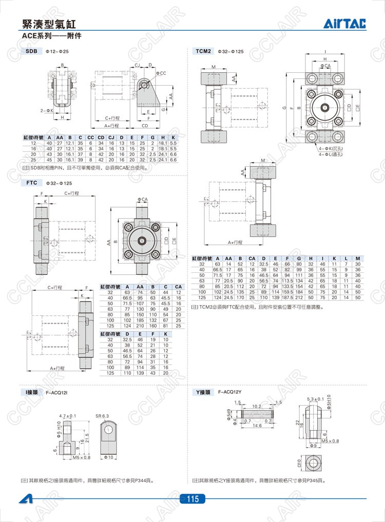 LB12,FA/FB12,CA12,CB32,CR32,SDB12,FTC32,TCM232,F-ACQ12I,F-ACQ12Y,AIRTAC亞德客緊湊型氣缸附件
