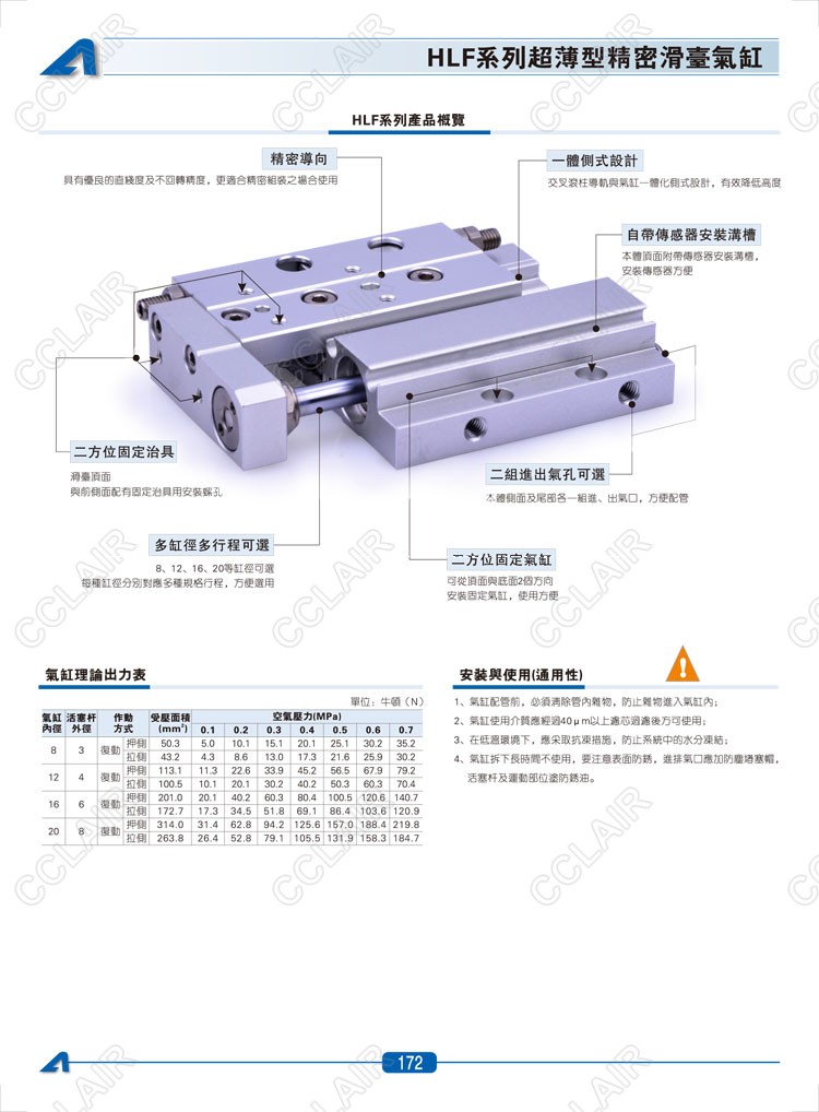 HLF8*10-S,HLF8*20-S,HLF8*30-S,HLF12*20-S,HLF12*30-S,AIRTAC亞德客超薄型精密滑臺(tái)氣缸