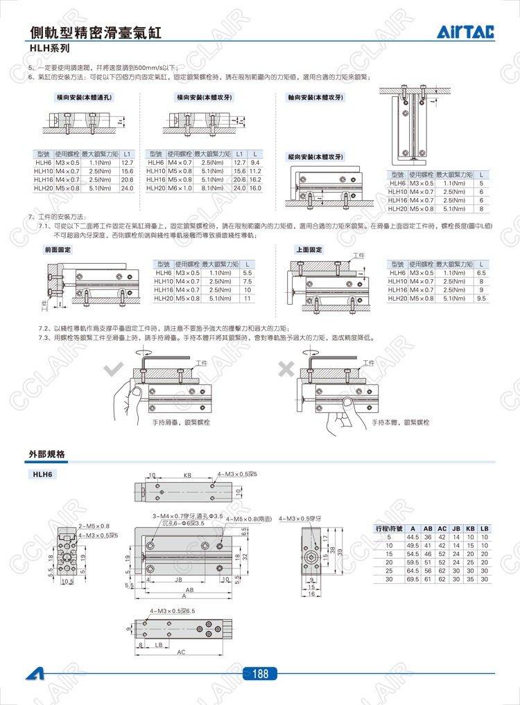 HLH6*5-S,HLH6*10-S,HLH6*15-S,HLH6*20-S,HLH6*25-S,AIRTAC亞德客側(cè)軌型精密滑臺氣缸