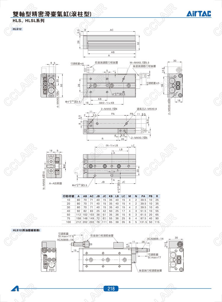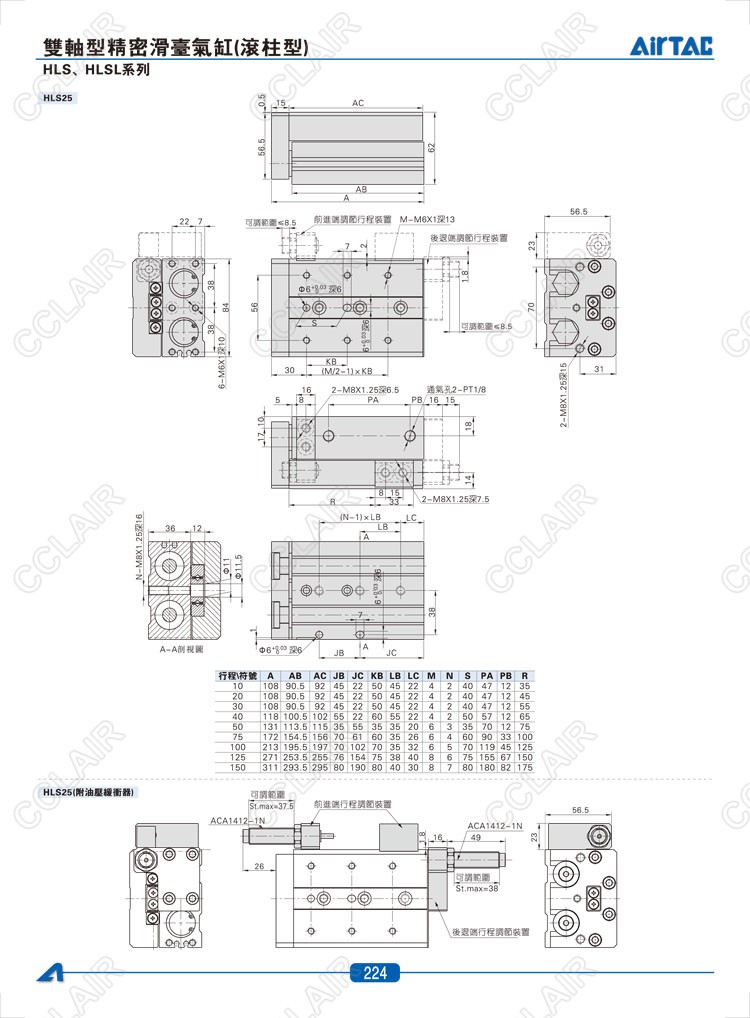 HLS6*10-S,HLS6*20-S,HLS6*30-S,HLSL6*10-S,HLSL6*20-S,HLSL6*30-S,AIRTAC亞德客雙軸型精密滑臺(tái)氣缸