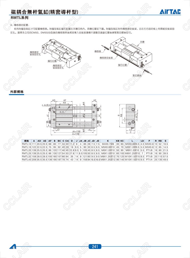 亞德客AIRTAC,RMTL16*50,RMTL20*50,RMTL25*50,RMTL32*50,RMTL32*50-S,RMTL40*50,RMTL40*50-S,磁耦合無(wú)桿氣缸
