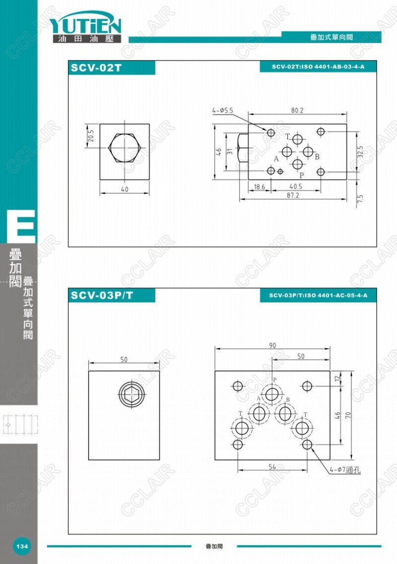 YUTIEN油田疊加式單向閥SCV-02A,SCV-02B,SCV-02P,SCV-02T,SCV-03A,SCV-03B,SCV-03P,SCV-03T