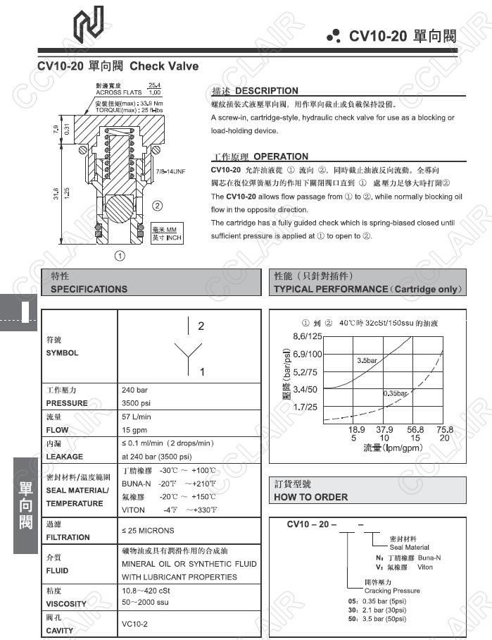 Northman臺(tái)灣北部精機(jī),單向閥CV10-20-05-N,CV10-20-05-V,CV10-20-30-N,CV10-20-30-V,CV10-20-50-N,CV10-20-50-V