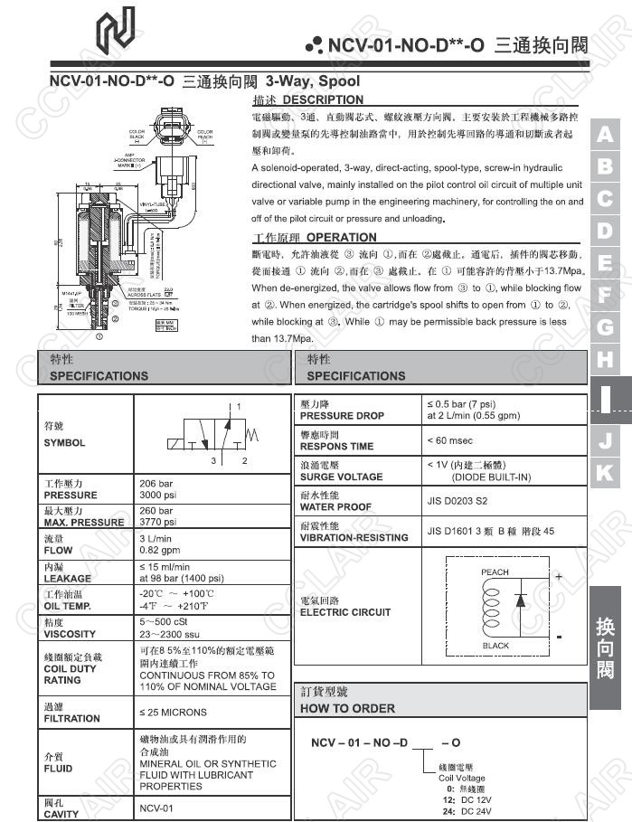 Northman北部精機,三通換向閥NCV-01-NO-D0-O,NCV-01-NO-D12-O,NCV-01-NO-D24-O