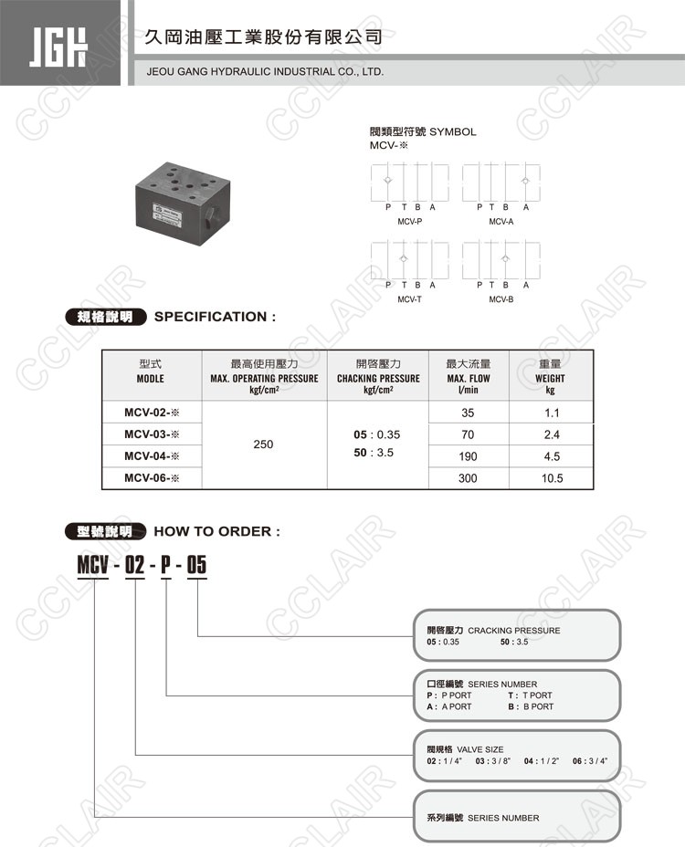 JeouGang臺灣久岡,疊加式單向閥MCV-02-P-05,MCV-02-P-50,MCV-02-T-05,MCV-03-A-50,MCV-03-B-05,MCV-03-B-50,MCV-04-P-05,MCV-04-P-50,MCV-04-T-05,MCV-04-T-50,MCV-06-T-05,MCV-06-T-50,MCV-06-A-05,MCV-06-A-50,MCV-06-B-05,MCV-06-B-50