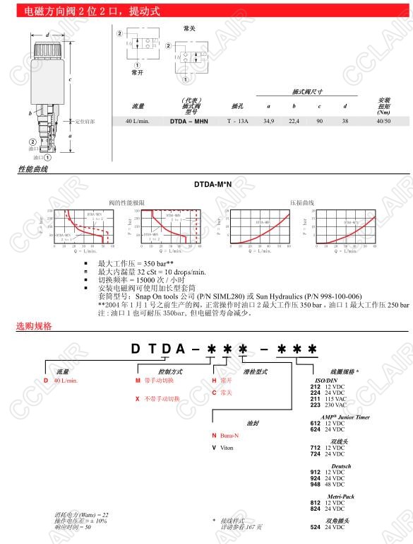 DTDA-MHN,DTDA-MHV,DTDA-MCN,DTDA-MCV,DTDA-XHN,DTDA-XHV,DTDA-XCN,DTDA-XCV,電磁方向閥