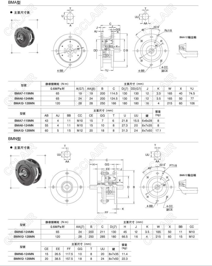 BMA7-119MN,BMA6-124MN,BMA12-128MN,BMN6-124MN,BMN12-128MN,空壓通軸制動(dòng)器