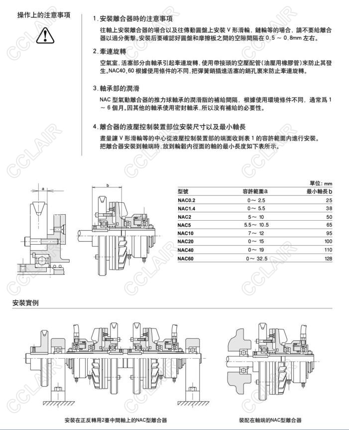 NAC0.2,NAC1.4,NAC2,NAC5,NAC10,NAC20,NAC40,NAC60,空壓通軸式離合器