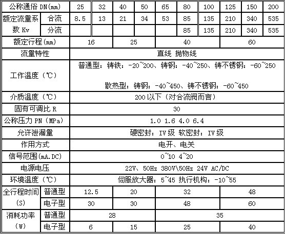 本系列產(chǎn)品公稱(chēng)通徑由20至200mm,公稱(chēng)壓力有1.0、1.6、4.0、6.4MPa,使用溫度范圍由-40℃~450℃,接受信號(hào)為0~10mA.DC或4~20mA.DC。其中電動(dòng)單座調(diào)節(jié)閥適用于壓差較小,介質(zhì)粘度較大或稍有顆粒雜質(zhì)場(chǎng)合。電動(dòng)套筒調(diào)節(jié)閥適用于壓差較大場(chǎng)合。按閥內(nèi)件密封部分材質(zhì)分又有金屬-金屬和非金屬-金屬密封兩種,后者閥關(guān)閉時(shí)泄漏量可達(dá)VI級(jí)(零泄漏)標(biāo)準(zhǔn)。按填料不同可分為一般填料密封和波紋管密封兩種,前者用一般場(chǎng)合,而后者用至不允許外漏的重要場(chǎng)合。流量特性為線(xiàn)性或等百分比。配用不同的執(zhí)行機(jī)構(gòu)可分為普通型和電子型兩種。多種多樣的品種規(guī)??晒┻x擇。