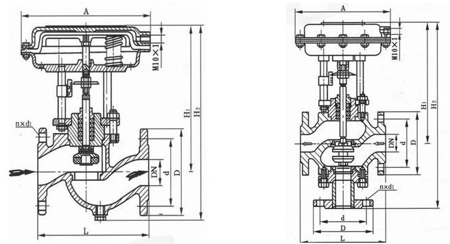 本系列產(chǎn)品有薄膜式、活塞式兩種。閥體結(jié)構(gòu)有單座、套筒、雙座(二位三通)三種,密封形式有填料密封和波紋管密封兩種,產(chǎn)品公稱壓力等級有PN10、 16、40、46四種,公稱口徑范圍DN20~200mm。適用流體溫度由-60~450℃。泄漏量等級為IV級或VI級。流量特性為快開。