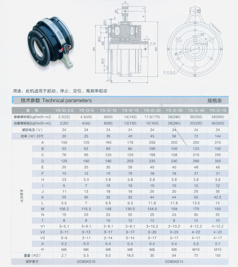 YS-D型套筒式電磁離合、制動(dòng)器組合用途:此機(jī)適用于啟動(dòng)、停止、定位、高頻率啟動(dòng)。