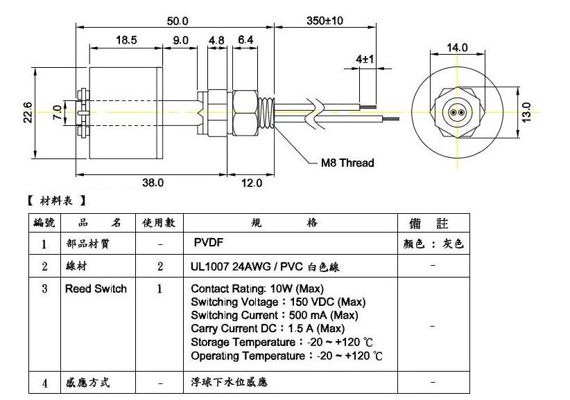 XFL-PVDF38I,進口PVDF頂裝式浮球開關(guān)
