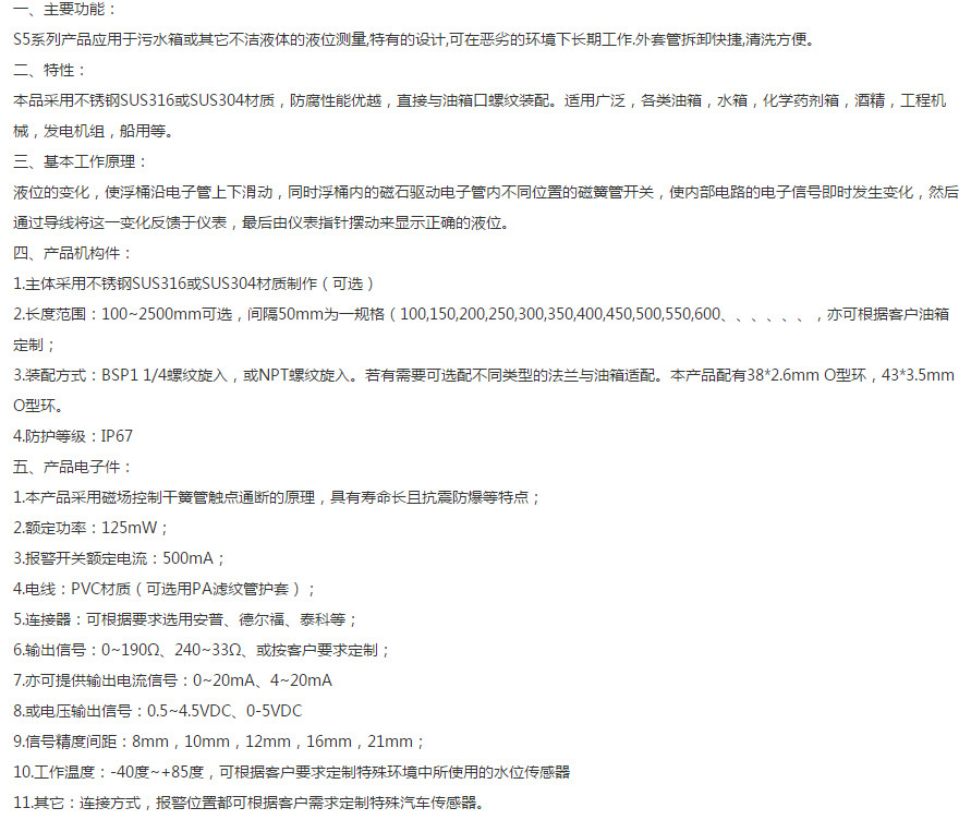 XFL-S5-350MM,XFL-S5-100MM,XFL-S5-150MM,XFL-S5-200MM,甲醇燃料專用液位傳感器