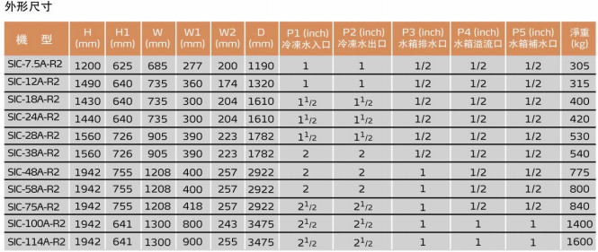 SIC-7.5A-R2,SIC-12A-R2,SIC-18A-R2,SIC-24A-R2,SIC-28A-R2,SIC-38A-R2,SIC-48A-R2,SIC-58A-R2,SIC-75A-R2,SIC-100A-R2,SIC-114A-R2環(huán)保冷媒工業(yè)用冷水機