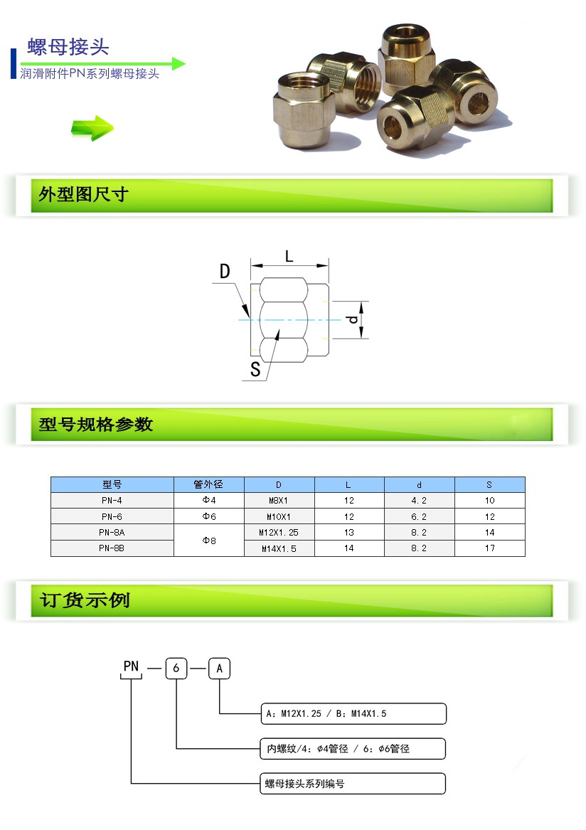 PN-4,PN-6,PN-8A,PN-8B,螺母接頭