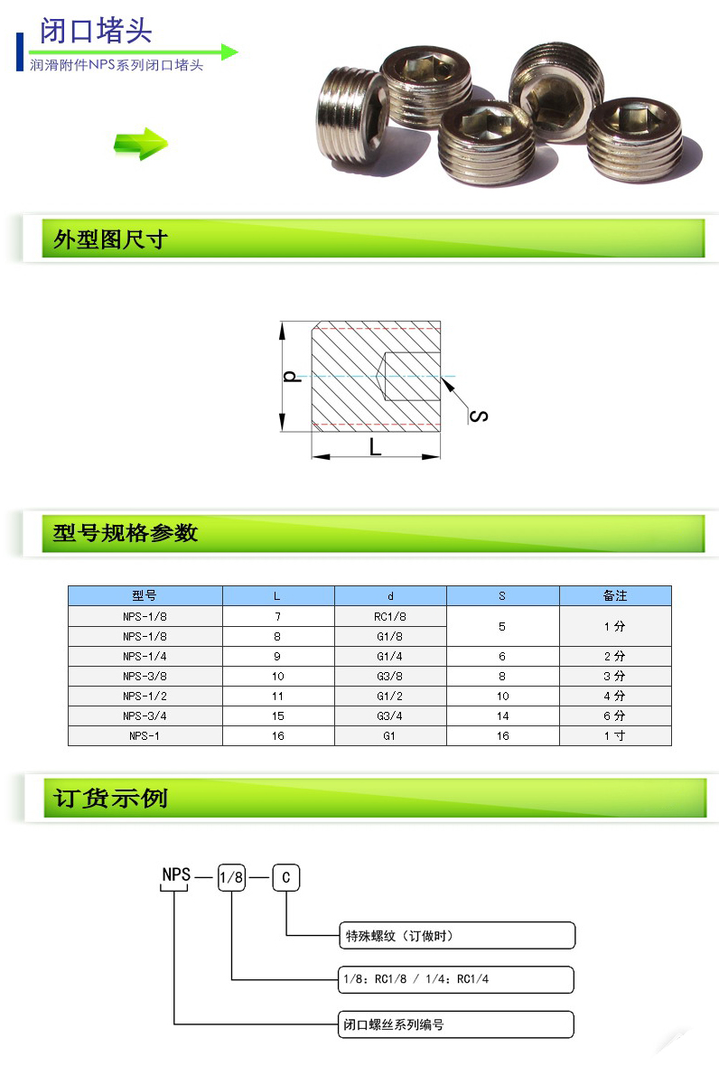 NPS-1/8,NPS-1/4,NPS-3/8,NPS-1/2,NPS-3/4,NPS-1,閉口堵頭