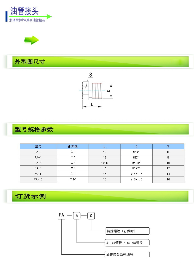 PA-3,PA-4,PA-6,PA-8,PA-8C,PA-10,油管接頭