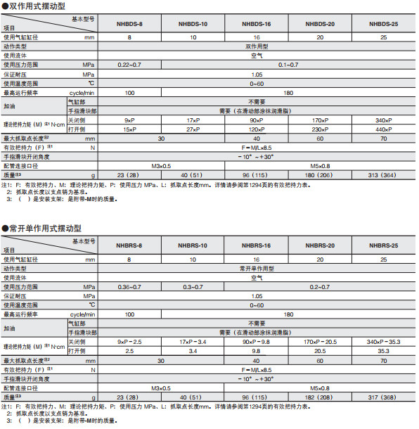 NHBDS-8,NHBDS-10,NHBDS-16,NHBDS-20,NHBDS-25,NHBRS-8,NHBRS-10,NHBRS-16,NHBRS-20,NHBRS-25,氣動手指