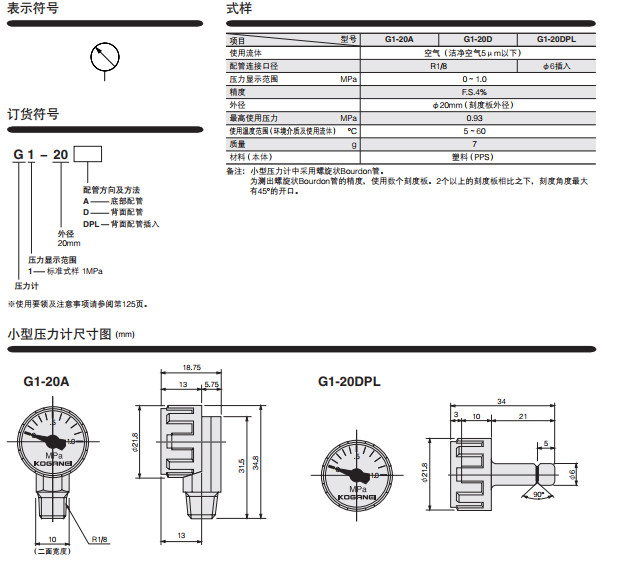 G1-20A,G1-20D,G1-20DPL,小型壓力計