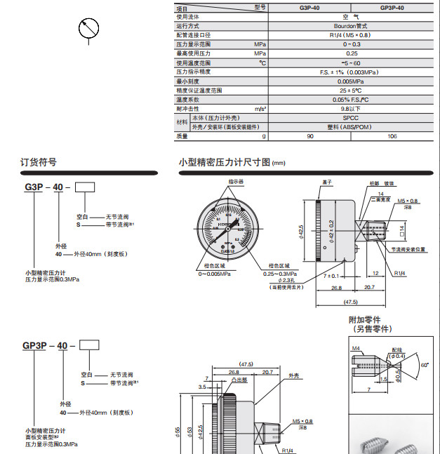 G3P-40,G3P-40-S,GP3P-40,GP3P-40-S,小型精密壓力計