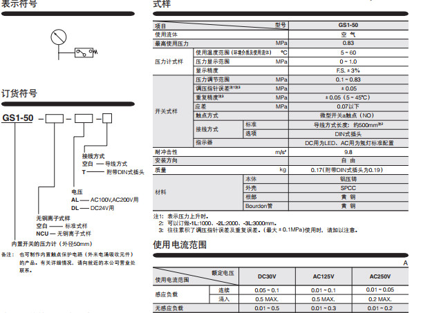 GS1-50,GS1-50-NCU,內置開關式壓力計