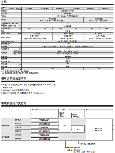 VA250AE1,VA250AE1-11,VA250AE2,VA2503AE1,VA2503AE1-11,VA2503AE2,真空用圓形電磁閥