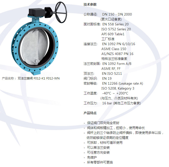F012-WN DN150,F012-WN DN200,F012-WN DN250,F012-WN DN300,雙法蘭蝶閥