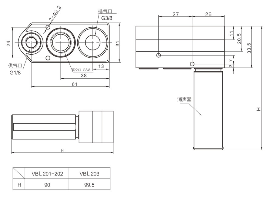 | B | G1/8 | G3/8 | 內(nèi)置消音器 |