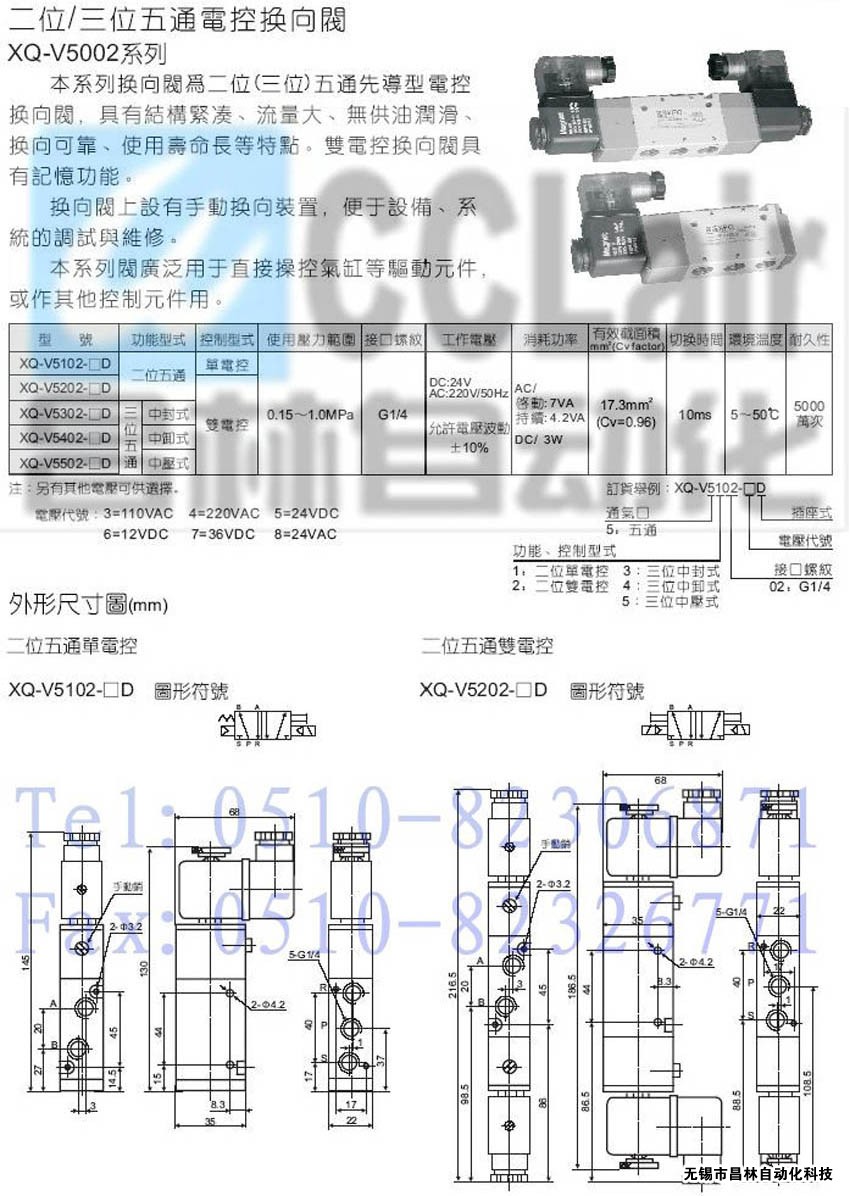 XQ-V5102-8D,XQ-V5202-3D,XQ-V5202-4D,XQ-V5202-5D,XQ-V5202-6D,二位/三位五通電控?fù)Q向閥