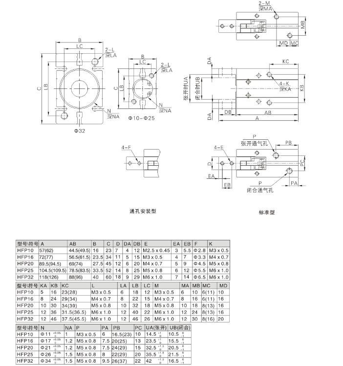 亞德客型氣動(dòng)手指氣缸 HFP-10,HFP-16,HFP-20,HFP-25,HFP-32,HFP-10N,HFP-16N,HFP-20N,HFP-25N,HFP-32N