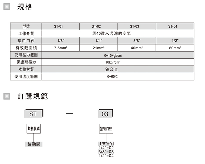 梭動閥ST-01,ST-02,ST-03,ST-04