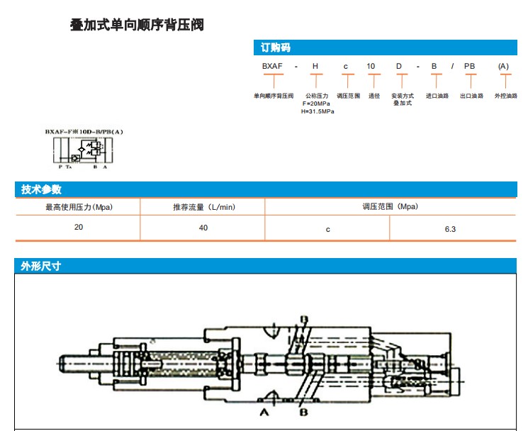 BXAF-Fc10D-B/PB(A),BXAF-Hc10D-B/PB(A),疊加式單向順序背壓閥