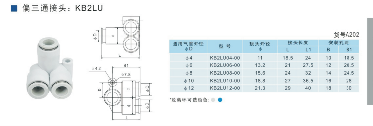 SMC型偏三通接頭KB2LU04-00,KB2LU06-00,KB2LU08-00,KB2LU10-00,KB2LU12-00,
