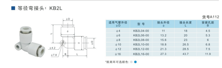 SMC型等徑彎接頭KB2L04-00,KB2L06-00,KB2L08-00,KB2L10-00,KB2L12-00,KB2L16-00,