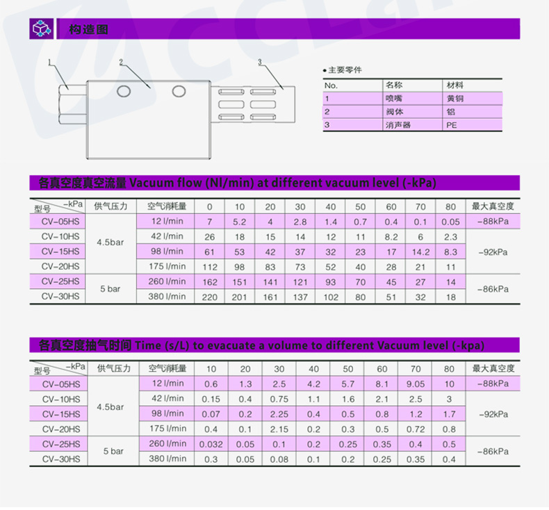 真空發(fā)生器CV-10-HS,CV-10LS,CV-15-HS,CV-15LS,CV-20LS,CV-20-HS,CV-25LS,CV-25-HS,CV-30LS,CV-30-HS,