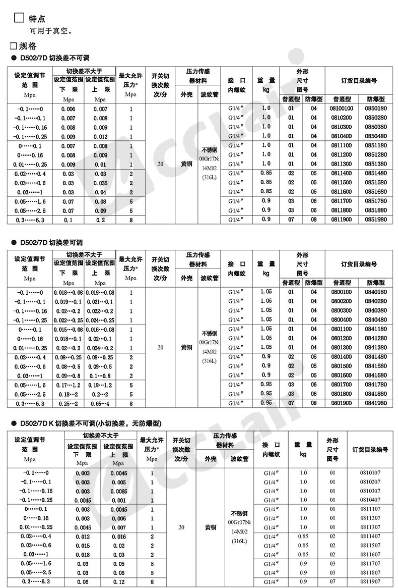 0810108,0811508,0810208,0811608,壓力控制器 D502/7DZ切換差不可調(diào)