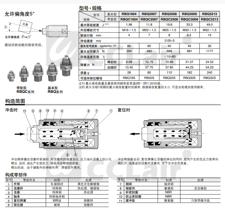 RBQ1604,RBQC1604,RBQ2007,RBQC2007,RBQ2508,RBQC2508,油壓緩沖器,短款型 RBQ3009,RBQC3009,RBQ3213,RBQC3213,