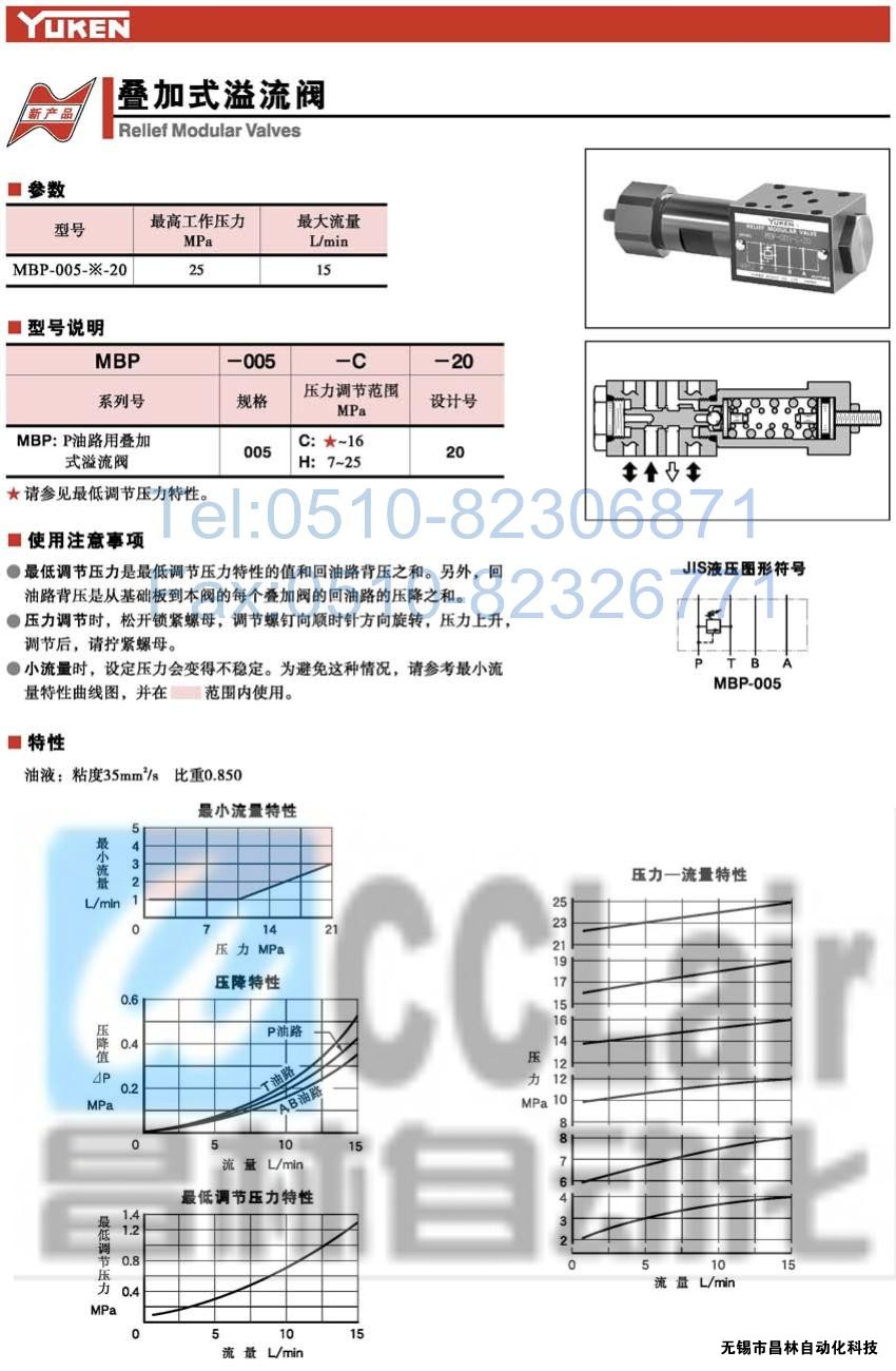MBP-005-C-20,MBP-005-H-20,疊加式溢流閥,榆次油研疊加式溢流閥,YUKEN疊加式溢流閥