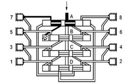 | 六、使用說明 1、在系統(tǒng)中推薦最多通過“兩級”來進(jìn)行潤滑劑的分配。 2、排出油口1和2始終不能關(guān)閉。 3、始終使用原配的排出油口油嘴零件組。 4、裝拆調(diào)換油嘴零件時(shí)要從每側(cè)的上部或最下部吐出口開始。 5、如果吐出口要補(bǔ)充關(guān)閉,合并潤滑劑量(改流到下面低數(shù)的吐出口排出),必須去掉油嘴體,用M10×1螺塞封堵按下圖范例連接。 |