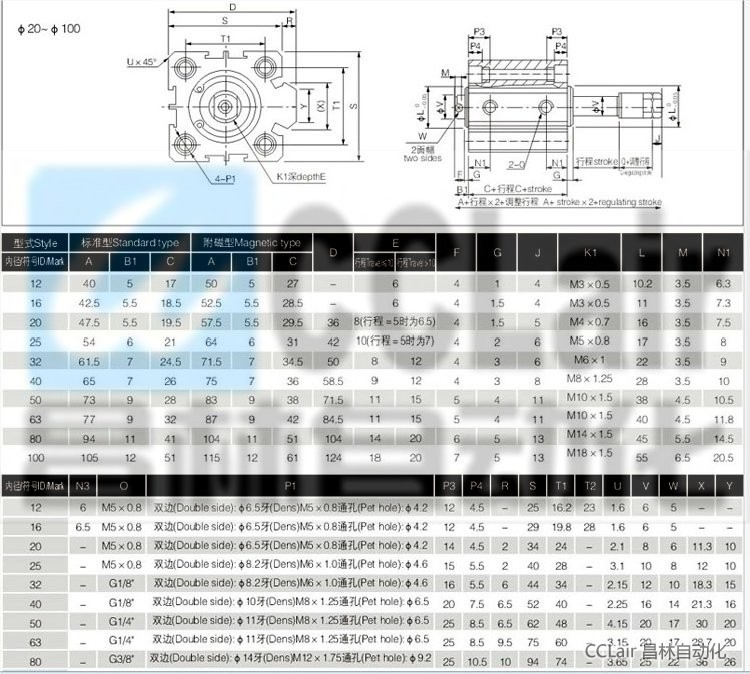 SDAJ32*95,SDAJ32*100,SDAJ40*20,SDAJ40*25,SDAJ40*30,SDAJ40*35,SDAJ40*40,行程可調(diào)超薄型氣缸