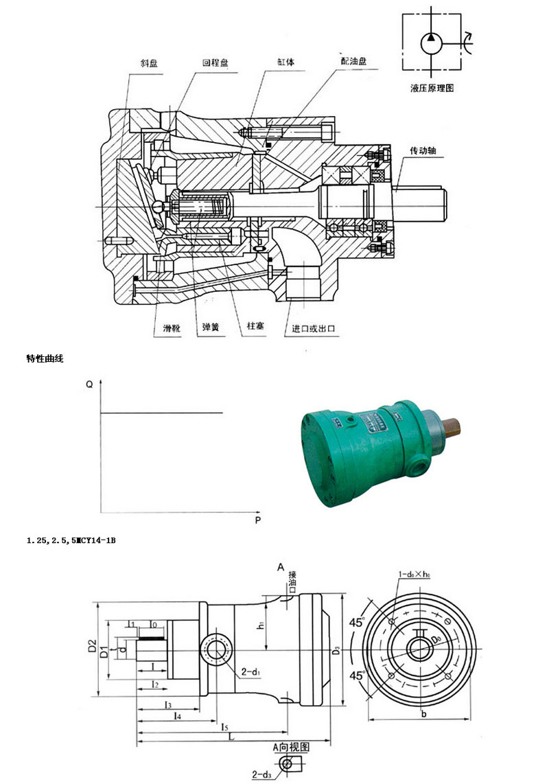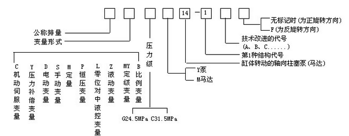 表示:排量為63毫升/轉(zhuǎn),壓力為31.5MPa的手動變量的缸體旋轉(zhuǎn)的軸向柱塞油泵。