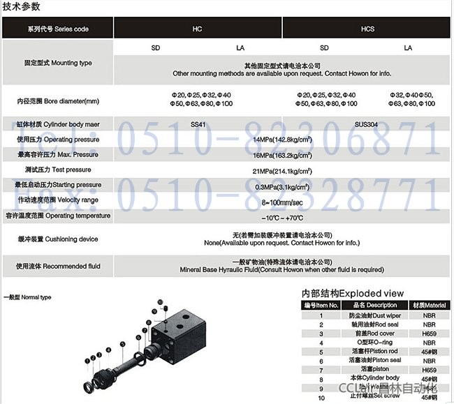 HCS-LA-32,HCS-LA-40,HCS-LA-50,HCS-LA-63,HCS-LA-80,HCS-LA-100,HCS-SD-100,薄型油壓缸
