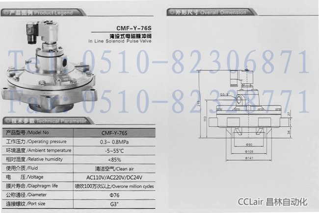 CMF-Y-76S,淹沒式電磁脈沖閥