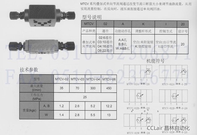 MTCV-02,MTCV-03,MTCV-04,MTCV-06,MTCV-02A-K-I-20,MTCV-03A-K-I-20,MTCV-02B-K-I-20,MTCV-02W,MTCV-02A-I,MTCV-03W,疊加式單向節(jié)流閥,生產廠家,價格