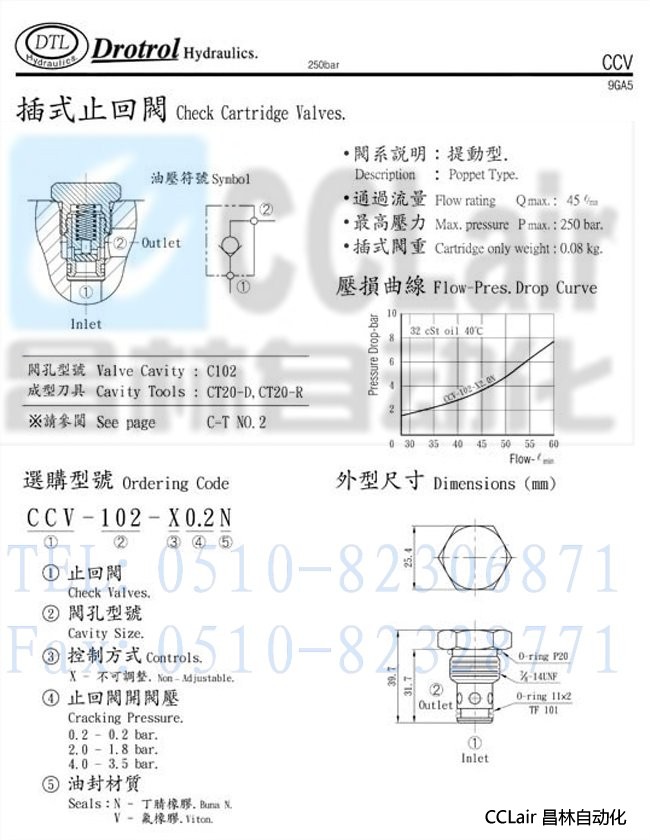 CCV-102-X0.2N,CCV-102-X2.0N,CCV-102-X4.0N,磐龍插式止回閥