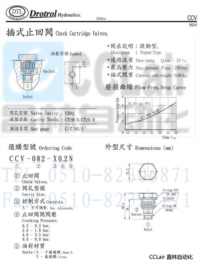 CCV-082-X0.2N,CCV-082-X2.0N,CCV-082-X4.0N,CCV-082-X9.0N,磐龍插式止回閥 |