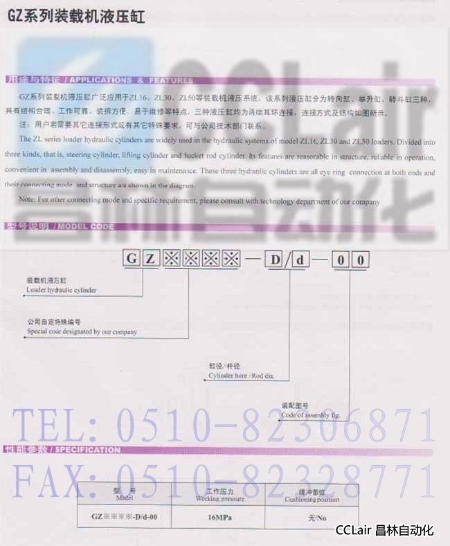 GZ1677-200/110,GZ2822-100/55,GZ2133-110/63,裝載機(jī)液壓缸