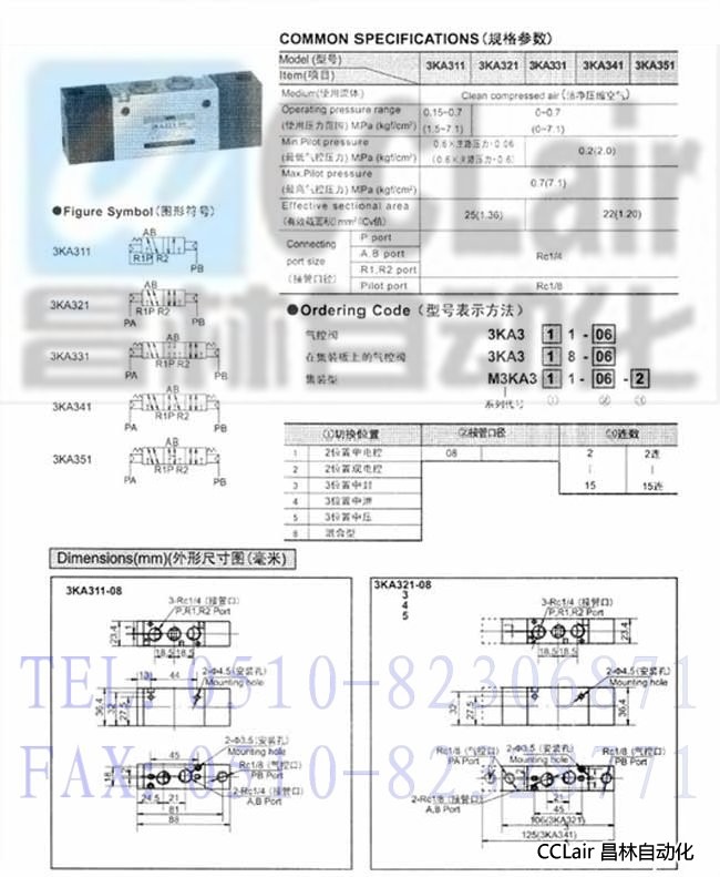 M3KA321-08-12,M3KA331-08-12,M3KA341-08-13,五通氣控閥,